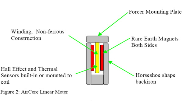 •小推力款型采用小極距設(shè)計(30mm),相同驅(qū)動下提高電流分辨率, 負(fù)面的影響是電機(jī)較寬